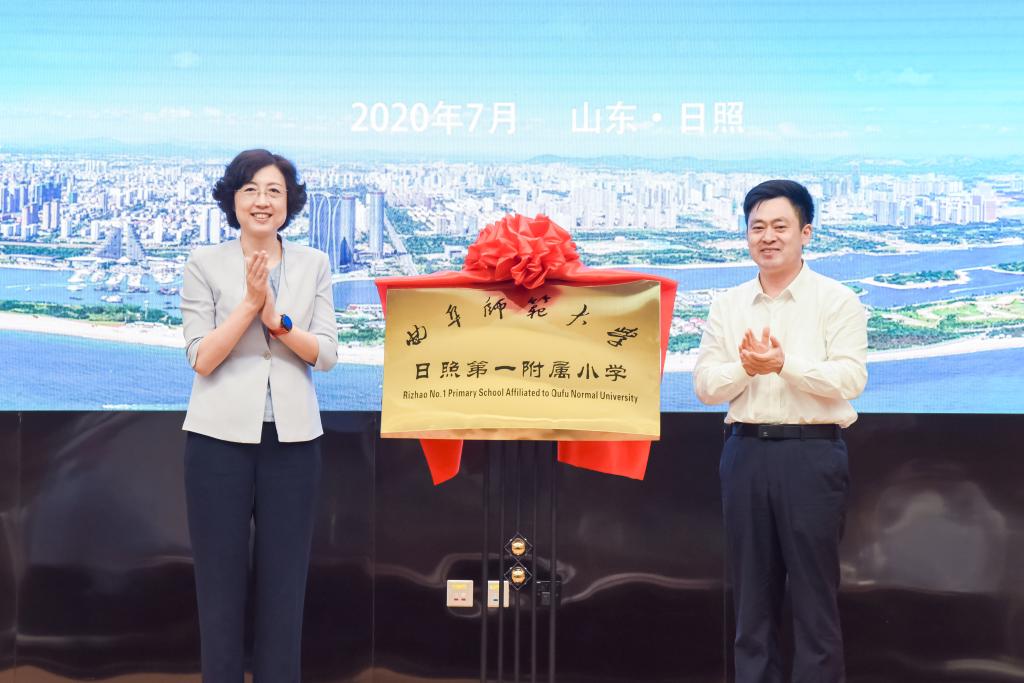 仪式上,日照市委书记张惠与曲阜师大党委书记戚万学共同为WG网页版日照第一附属小学揭牌。日照市委副书记、市长李永红,曲阜师大党委副书记、校长张洪海,分别致辞。日照市委副书记李在武主持仪式,日照市副市长高月波,曲阜师大党委副书记扈庆学、副校长冯冲,出席活动。