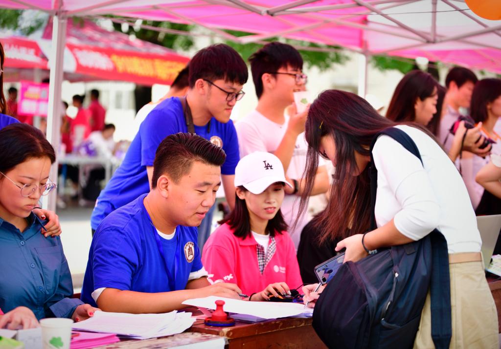 我校团委精心打造“温馨驿站”,根据提前统计的住宿意向,特意租借了25顶露营帐篷,开设“温馨驿站”,为家庭困难或者有特殊情况的家长提供住宿。书法学院以“开学第一笔”活动迎接新生的到来,提笔落墨,各色字体尽展大学生活新画卷。软件学院为迎新特殊定制了印有学院介绍及新生交流群二维码的瓶装矿泉水,寓意“瓶”水相逢、杯水传情。经济学院、法学院、传媒学院等学院专门制作了迎新宣传视频,刷屏“朋友圈”赢得点赞频频;历史文化学院在迎新现场进行汉舞表演,为迎新活动增彩添色;化学与化工学院、外国语学院开展了一对一迎新活动,为每位新同学提供专属服务;音乐学院设置特色签名墙,让新生写下对未来的美好祝愿;美术学院为每一位新生拍照留念,待到毕业时再交给大家回忆大学的起点时光。数学科学学院、物理工程学院等组织新生家长见面会,搭建起家长与学校沟通的桥梁。生命科学学院今年首次开展“我的大学教授宿舍第一课”活动,组织学院教授走进新生宿舍,传好学风建设第一棒,讲好入学思政第一课。