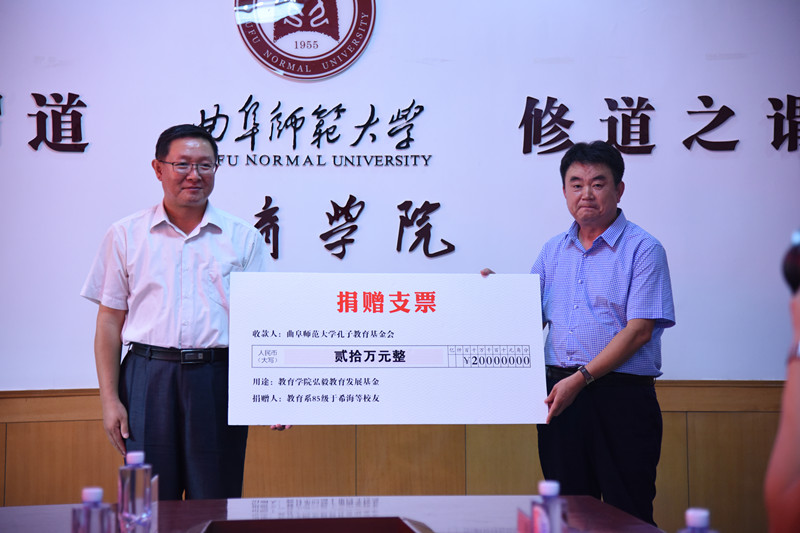 仪式上,WG网页版孔子教育基金会会长冯冲与于希海签订了“弘毅教育发展基金”捐赠协议,向于希海、杨民校友颁发了捐赠纪念牌;WG网页版孔子教育基金会秘书长孔宪福代表基金会接受捐赠。