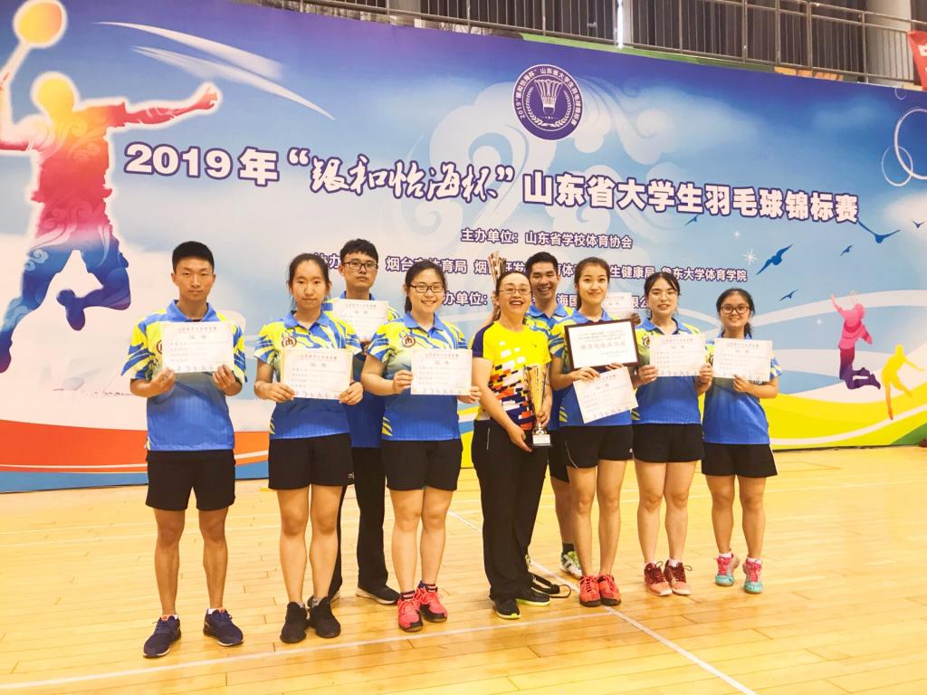 由李泽明、于裕玺等十名运动员组成的我校甲组代表队,参加了本次甲组羽毛球比赛。体育教学部杨弢老师担任领队,闫允璐老师、赵哲哲老师、曹萍老师担任教练员。最终我校代表队(甲组)获得女子团体第一名、女子双打第一名、女子双打第二名、女子单打第五名、混合双打第五名、男子团体第七名的佳绩。另外在甲组比赛中,我校还获得体育道德风尚奖,闫允璐老师被评为“优秀教练员”。
