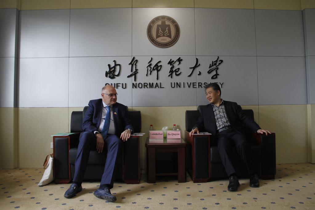 5月8日上午,乌克兰国立柴可夫斯基音乐学院常务副院长LOUTSENKO IOURI一行来访我校,并受聘我校音乐学院兼职教授,副校长扈庆学会见了来宾,为LOUTSENKO IOURI颁发了聘书。双方就两校间的教育交流合作举行了座谈,并签署了两校开展合作的框架协议。日照校区管理办公室、国际交流合作处、音乐学院主要负责人参加了会见。