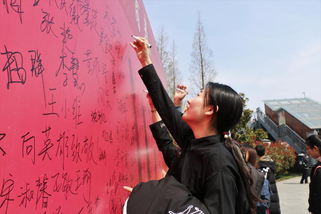 同学们从天桥广场出发,沿以历史时期为轴的活动路线,参观按中国的革命、建设和改革时期时间轴划分的十八个纪念点。每到一个纪念点,同学们通过阅读展板、扫描二维码获取音频、视频资料等形式,了解先烈们浴血奋战的历史,接受心灵的洗礼。同学们在终点签名板上留言签名,表达对先烈的缅怀之情。