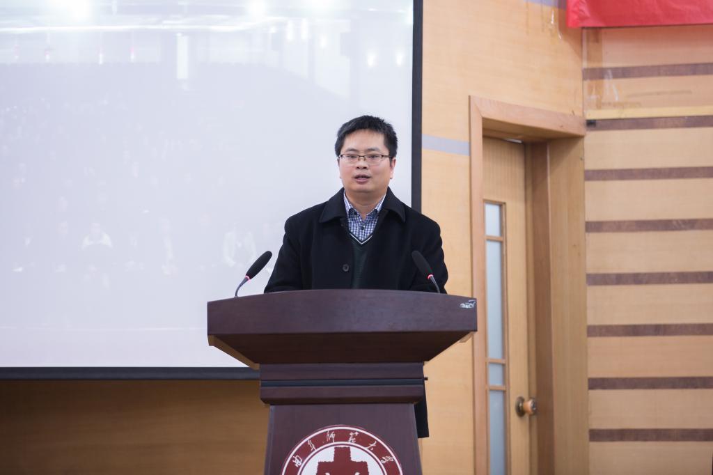 副校长冯冲宣读“关于表彰2018年度科研工作先进单位、优秀科研工作者及科研管理先进个人的决定”