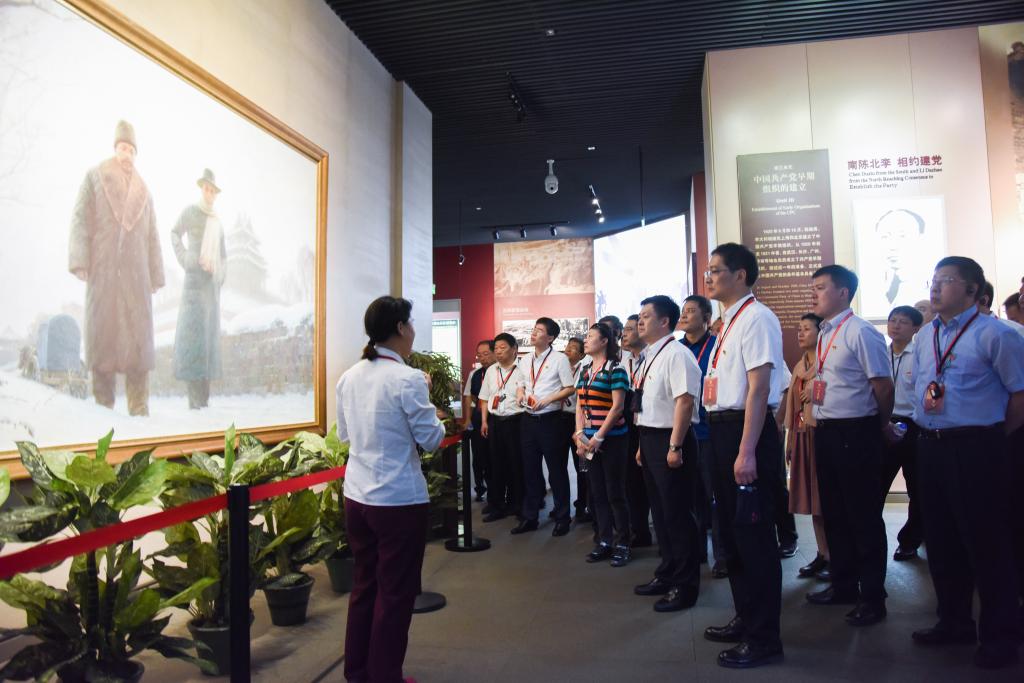 6月16日下午至17日,参训学员分别到南湖红船边、南湖革命纪念馆、上海淞沪抗战纪念馆、上海中共一大会址等地开展现场教学。在南湖边,学员们现场瞻仰了停泊在南湖上的红船,聆听和感受当年发生在烟雨南湖中的革命故事,对“红船”精神的内涵有了更深刻的了解。在南湖革命纪念馆,学员们认真聆听讲解,通过观看书籍、照片、遗物等珍贵史料,回顾铭记了党领导人民波澜壮阔的艰苦奋斗历程。“我志愿加入中国共产党,拥护党的纲领,遵守党的章程,履行党员义务,执行党的决定,严守党的纪律,保守党的秘密,对党忠诚,积极工作……”在南湖革命纪念馆宣誓墙前,全体党员高举右手、紧握拳头,面对党旗庄严宣誓。一声声铿锵有力的誓言声在现场激荡,进一步坚定了学员们为党的事业奋斗终身的理想信念。在上海淞沪抗战纪念馆,通过馆内存放着的历史资料,学员们详细了解了发生在上海的两次重大战役,深刻地感受到抗战英雄们为了国家的尊严和独立,顽强抵抗,不畏生死的英雄气魄和爱国情怀。在中共一大会址纪念馆内,展厅通过“序厅:起点”“前赴后继 救亡图存”“风云际会 相约建党”“群英汇集 开天辟地”“尾声:追梦”等五个部分向大家展示了党带领人民争取民族独立、人民解放和实现国家富强、人民幸福的伟大历史征程。