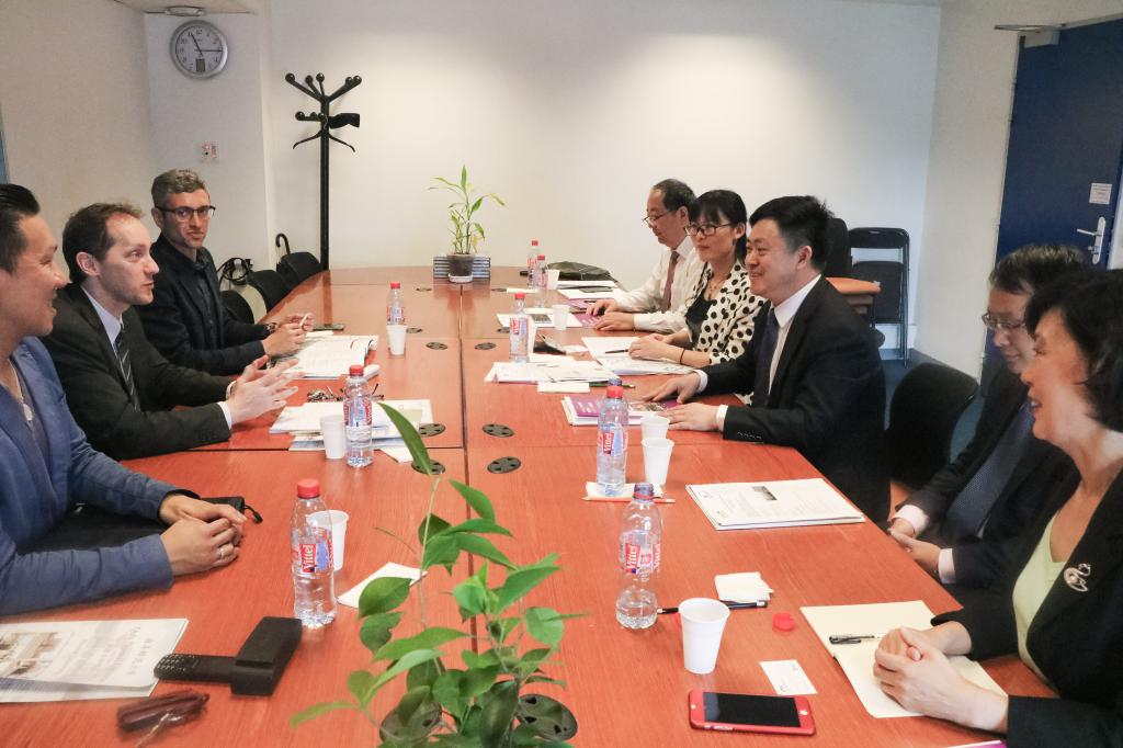 在访问法国里昂第三大学期间,考察团受到了副校长鲁赛·纪尧姆(ROUSSET Guillaume)、中国和港台地区教务主管聂瑞·科拉多(NERI Corrado)、国际关系部亚洲地区行政主管杨啸的热情接待。双方介绍了各自的办学情况以及国际交流合作的开展情况,并就两校开展合作的学科领域、合作方式、合作规模等进行了深入探讨。双方商定将根据实际需求,在学生暑期学习、长期交流和教师互访、外籍教师聘请等方面进行具体对接,并在条件成熟的情况下签署合作备忘录。会谈结束后,校方陪同考察团参观了学校主校区。