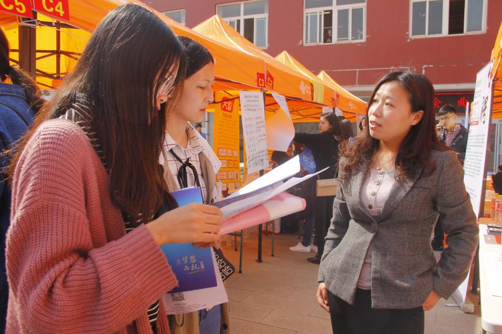 招聘会现场,各用人单位以悬挂宣传海报、派发宣传资料、面对面洽谈等多种形式向同学们详细介绍单位的基本情况、招聘要求、福利待遇以及发展前景,耐心、细致地进行现场答疑解惑。参加招聘的同学积极与招聘单位进行沟通交流。招聘会上,部分用人单位通过现场选聘考核,与求职者签订了就业协议;部分用人单位通过初选,与求职者初步达成录用意向。