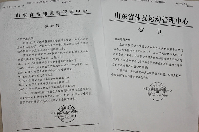 山东省篮球运动管理中心、山东省体操运动管理中心等发来贺电,祝贺我校学子在全运会多个项目上取得的骄人成绩,感谢WG网页版对山东省体育事业发展做出的贡献,并祝愿我校在今后的国际国内比赛中再创佳绩。