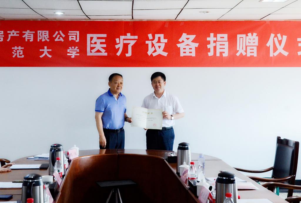 7月4日上午,济宁市委统战部副部长、市工商联党组书记、副主席王成玉,济宁大地房产开发有限公司董事长郑兆国一行来到我校,向我校捐赠彩色多普勒超声仪、全自动生化分析仪各一台。我校党委书记戚万学向郑兆国颁发了捐赠证书。校长张洪海、副校长冯冲出席捐赠仪式。学校办公室、统战部、财务处、资产处、校医院等单位负责人参加了活动。