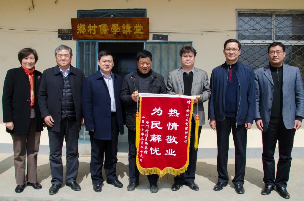 欢送现场,戚万学与村里的干部群众亲切交流,并代表学校向石门村、南陈村、三岔河村分别赠送了“携手奔小康,共圆中国梦”的书法作品。戚万学表示,第一书记驻村帮扶工作能够赢得老百姓的口碑,是对学校和第一书记最好的认可。他对泗水县县委县政府和当地干部群众两年来给予三位第一书记的关心和支持表示感谢。戚万学说,学校和三位第一书记与当地干部群众结下的深厚情谊将会一直保持下去,彼此之间以后要继续多走动、常联系,学校也将充分利用自身的智力资源和人才资源为村子的建设发展提供支持。