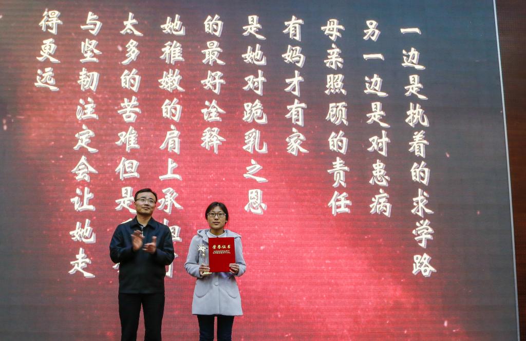 我校教育科学学院 2013级学生任纪兰是一位坚强、乐观、孝行感人的同学。任纪兰在小学四年级时曾因家庭贫困一度辍学,2015年父亲因病去世后,她将患精神疾病多年的母亲接到曲阜一同生活。在学校师生的帮助下,任纪兰一边读书学习,一边兼职打工,一边照料母亲。任纪兰的感人事迹经校内外媒体报道后,引起社会的热烈反响,以乐观坚韧、自强不息的精神被誉为当代青年学子的楷模。