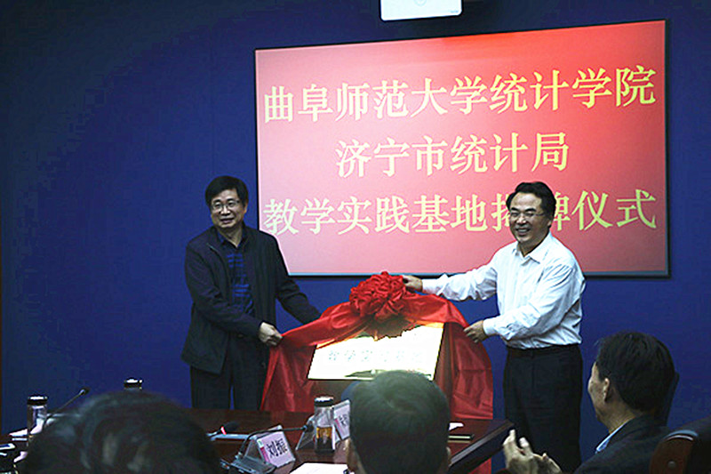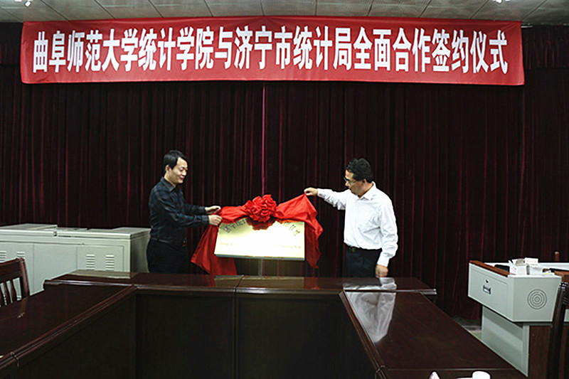 签订协议前,双方为“济宁统计系统教育培训基地”、“WG网页版教学实习基地”揭牌。